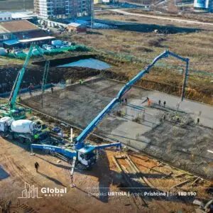 For the Kompleksi Utrina project in Arbëri, Prishtinë, Global Master entrusted Titan Beton to supply high-quality concrete for its foundation and structural needs. As a company committed to excellence, we provided durable, precisely mixed, and high-strength concrete, ensuring a solid and reliable base for this modern development.